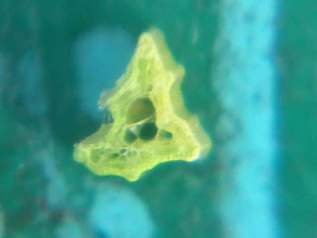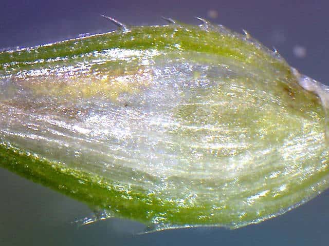 | ▼鱗片の刺。 | ▼果実は長さ約1.1mm | ▼茎の横断面、3稜がある。 |