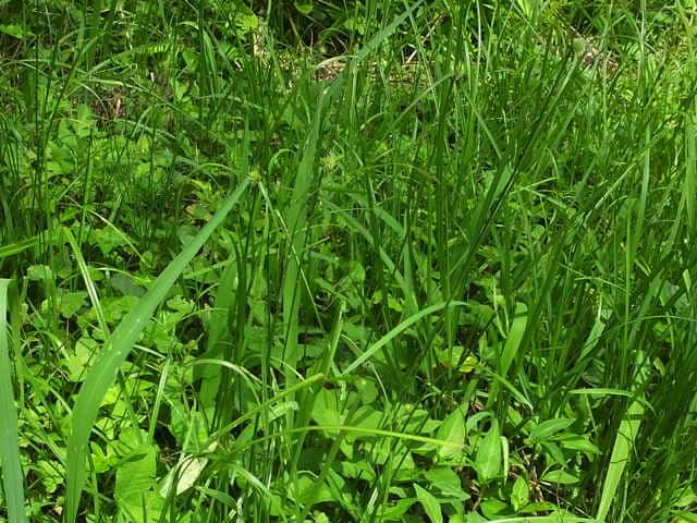 | この場所の集団は花序が球形であり、ヒメクグと思ったが、鱗片に刺があった。また最下の苞が直立している。 | ||