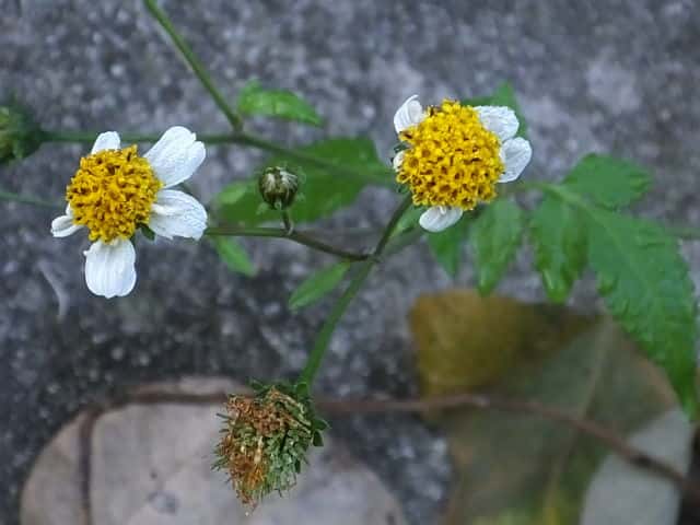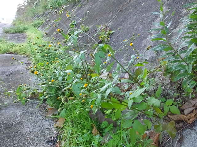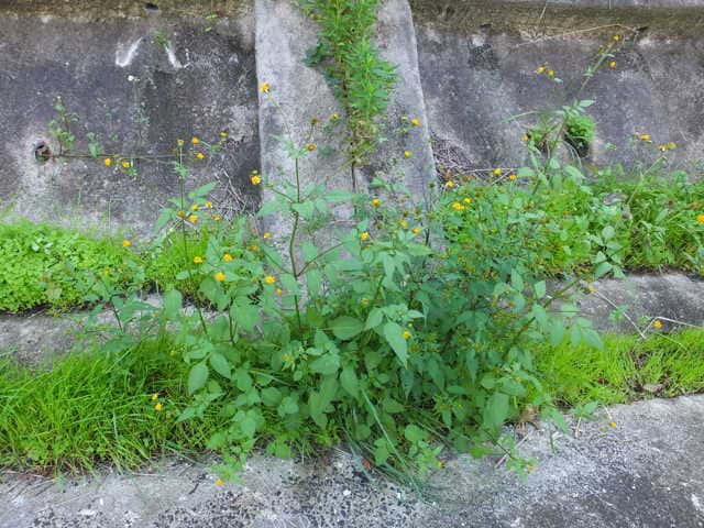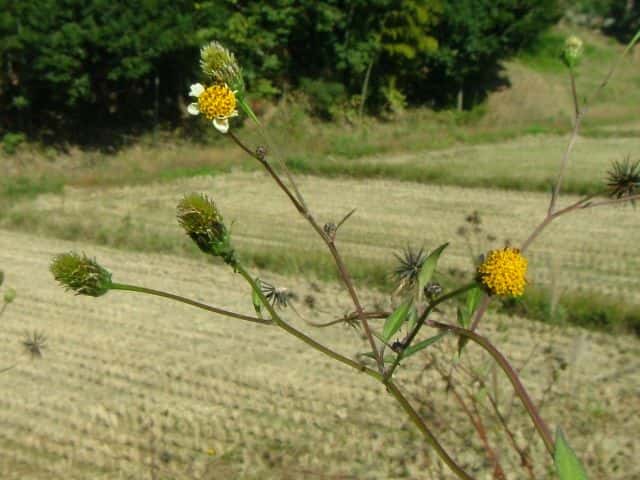 | 1年草 特徴はコセンダングサと同じであるが、外周の筒状花のうち何個かが大きく白色になるもの。そう果は4稜のある線形で、先端には下向きの刺のある冠毛が2〜4個ある。コシロノセンダングサとコセンダングサの雑種とされている。花期は9〜11月 学名は、Bidens pilosa var. intermedia キク科センダングサ属 似た花の区別 |