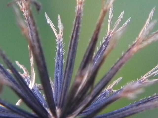 | ▼冠毛の下向きの刺。 | ▼果実の上部に上向きの毛が多い。 | ▼毛の基部が膨らんでいる。 |