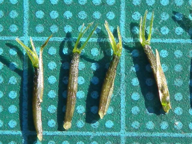| ▼果実 | ▼果実に冠毛が2〜3個見える。 | ▼果実に上向きの毛がある。 |