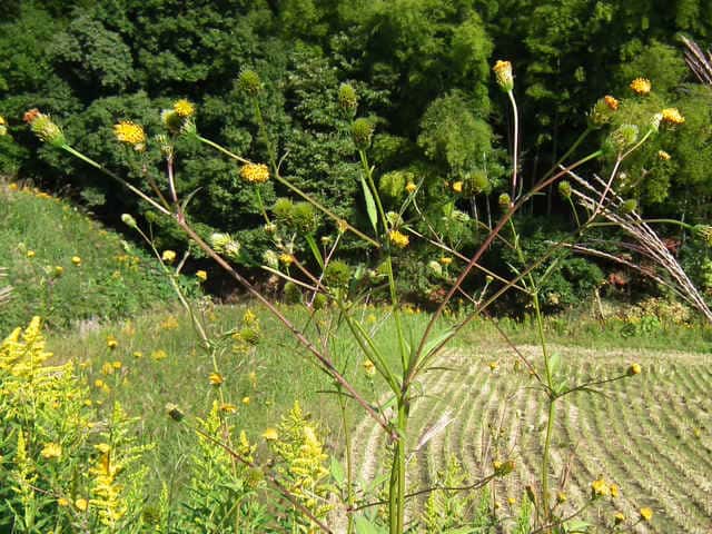 | ▼頭花は直径約1cm。 | ▼筒状花は子房を含んで長さ約1cm。 | ▼長さ約3mmの冠毛がある。 |