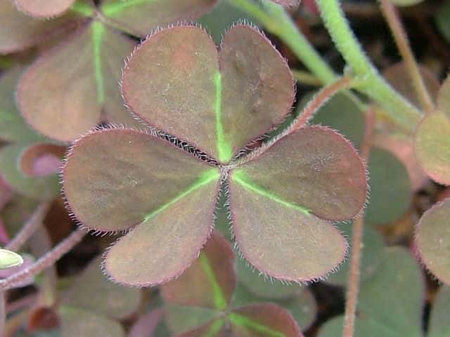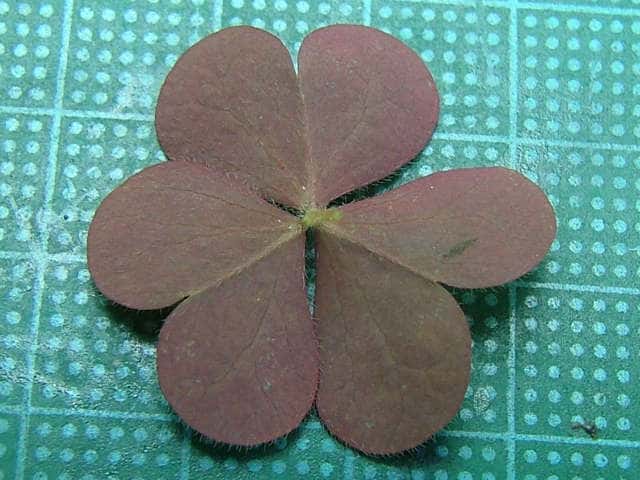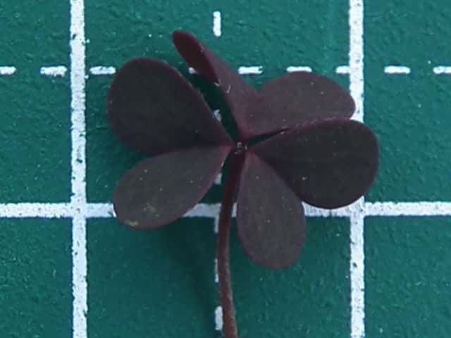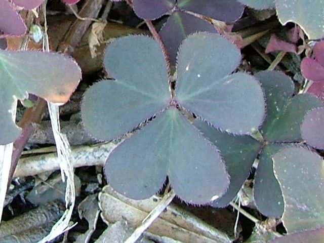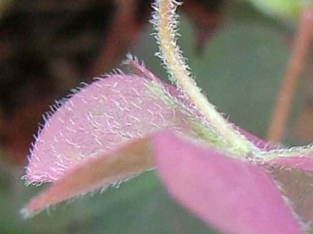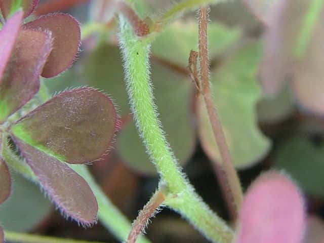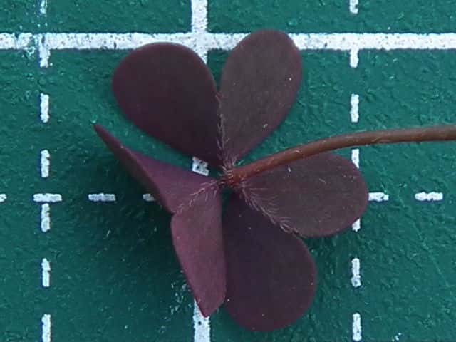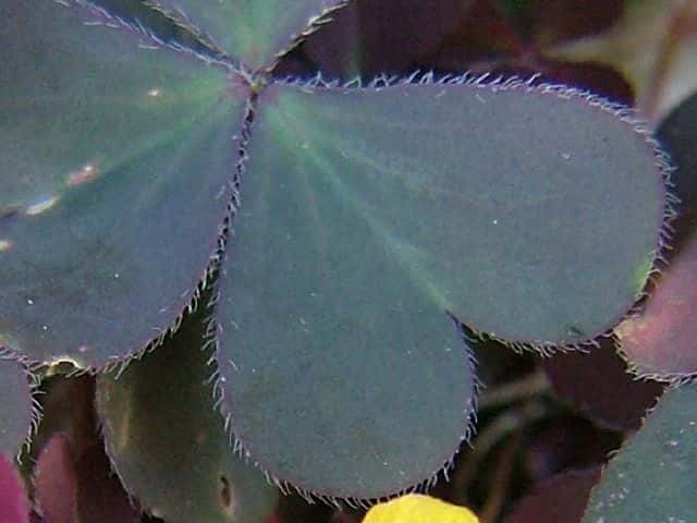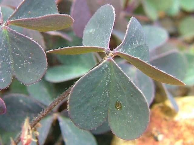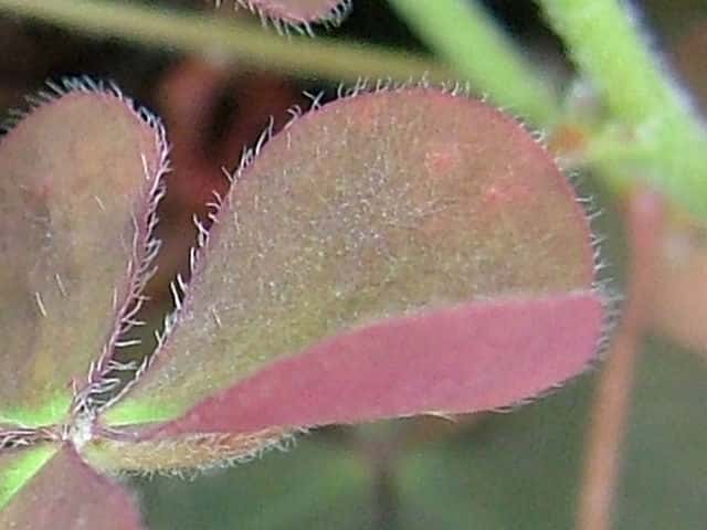 | ▼葉は3小葉からなる。 | ▼裏面。小葉の長さは約5mm。 | |