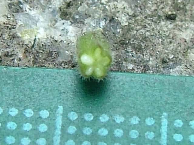 | ▼長さ約2cm。 | 子房は5室。 | ▼未熟な種子。長さ約1.8mm。 |