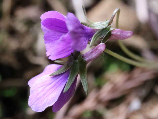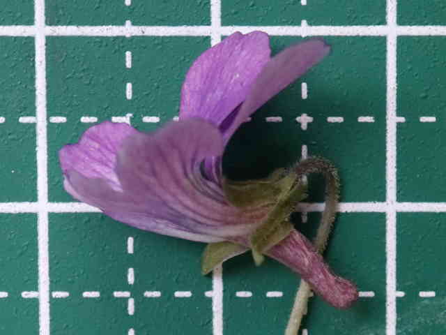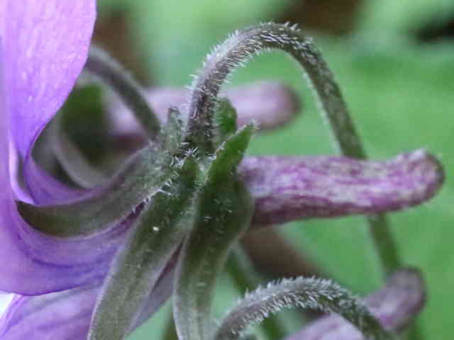| ▼距は細長く、毛がある。 | ▼花柄や萼に毛がある。 | ▼花は直径約1.3cm。 |