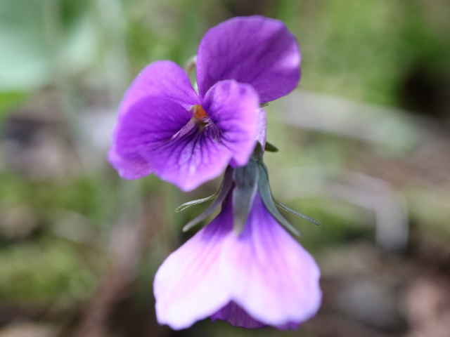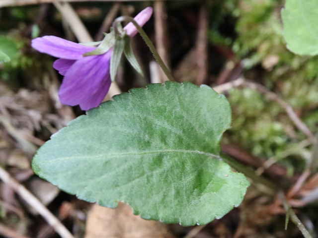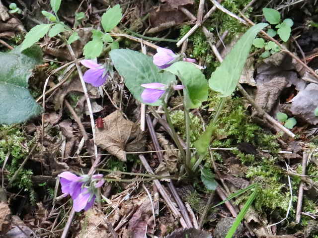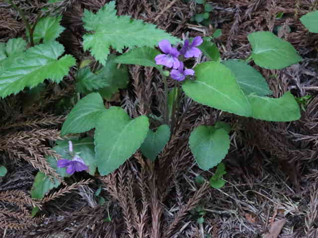 | 多年草 北海道〜屋久島分布しているが、中部地方以北の低山に個体数が多く、西日本の低地では少ない。日当たりのよい二次林の林縁や道ばた、畑の土手などを好む。花の色は鮮やかな紅紫色が多いが、青みの強いもの淡い色など、変化が多い。全体に毛が多く、特に距や子房、果実などに毛があるのが特徴。しかし地域によっては側弁の基部以外は無毛のものもある。一方、茎や葉、側弁に毛のあるコスミレもあるので注意が必要。草丈は5〜10cm。花は直径1.5cm前後で、側弁の基部に毛が密生する。花弁の基部が閉じぎみに咲き、花内部はほとんど見えない。コスミレは基部からよく開く。またアカネスミレは距が細長く、先が細くなるのに対し、コスミレの距は太くてぼってりしている。花期の葉の葉身は長さ2〜5cmで、さじ形から長三角形、長卵形と変化が多い。ふつう微毛が生え、両面とも明るい緑色。裏面が紫色を帯びるものもある。葉柄にはほとんど翼がないが、上面にわずかに翼があるものもある。花期は4月上旬〜5月上旬。(日本のスミレ) 学名は、Viola phalacrocarpa スミレ科スミレ属 スミレの分類 |
