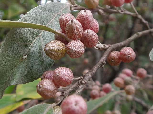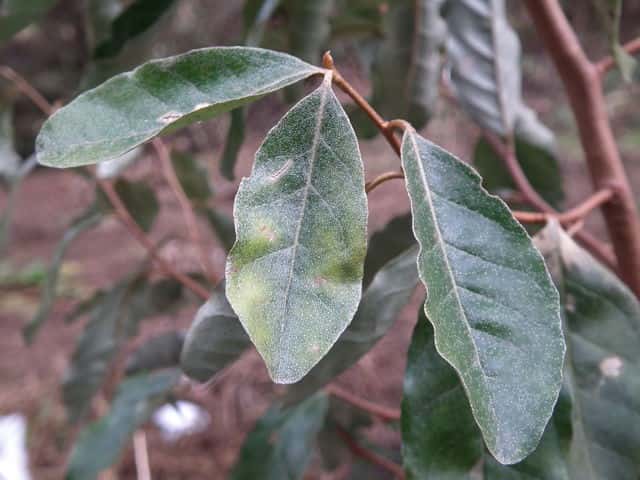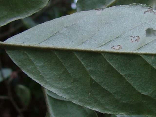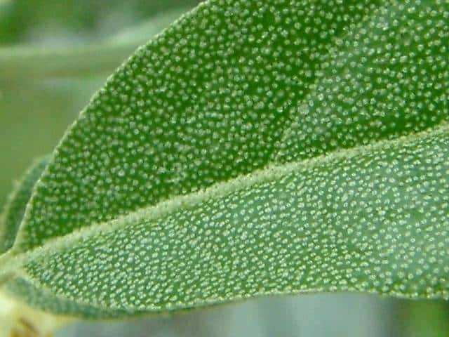| ▼葉裏には鱗状毛が密生する。 | ||
