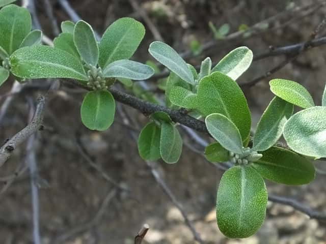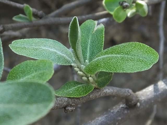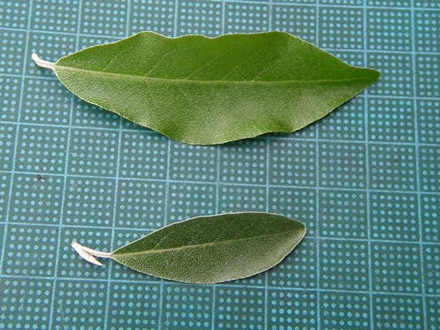 | ▼葉表には鱗状毛がある。 | ▼葉裏には鱗状毛が密生する。 | |
