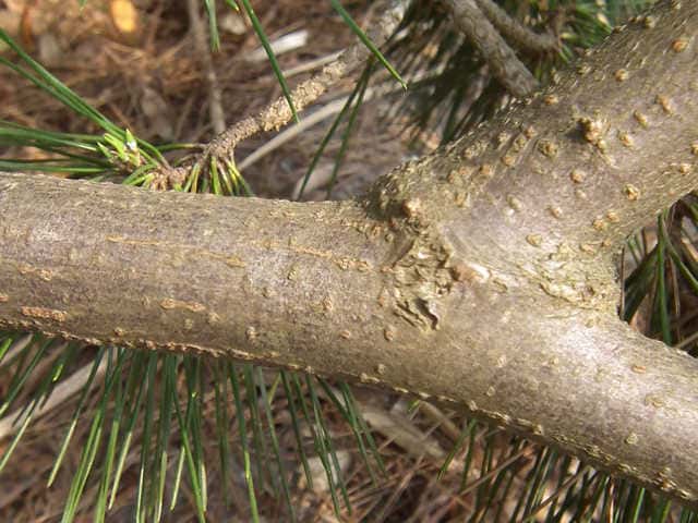 | ▼上は長枝の葉、下は短枝の葉。 | ▼星状毛に似るが中央部が広く、鱗状毛。 | |