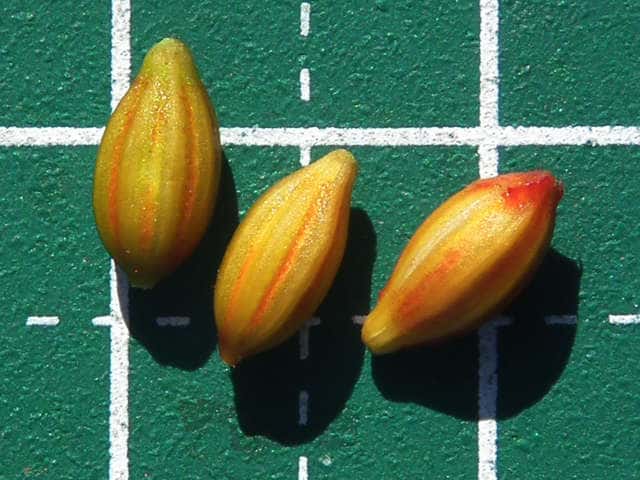 | ▼種子(真の果実)は1個入り、長さ約7mm。表面に溝がある。中に種子が1個ある。 | ||