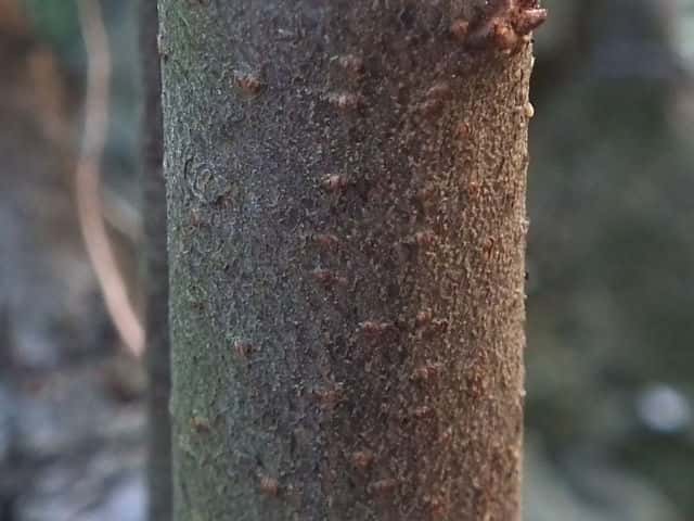 | ▼褐色の鱗状毛が混じる。 | ▼鱗状毛が密生する。 | ▼鱗状毛の拡大。 |