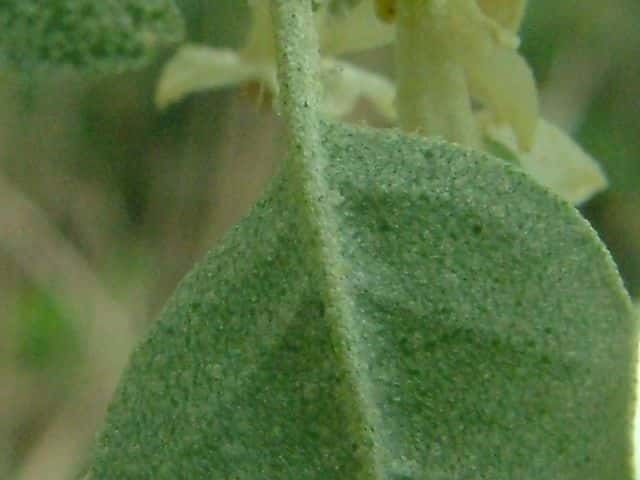 | ▼葉は6〜8cm。 | ▼表面に鱗状毛が多い。 | |