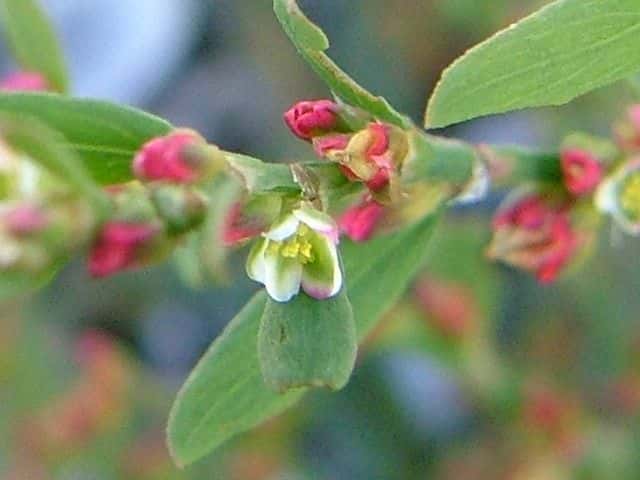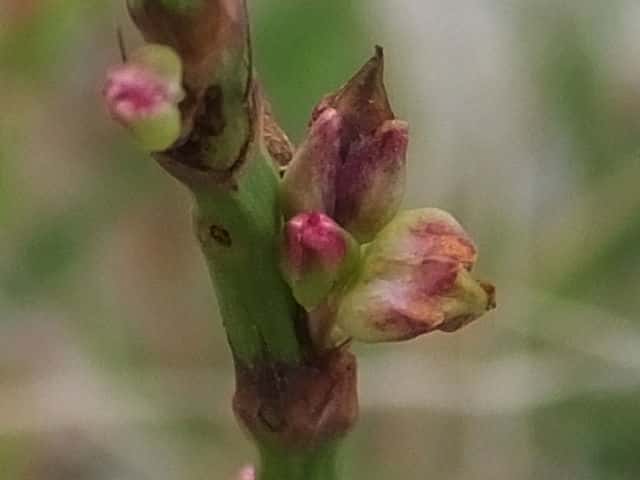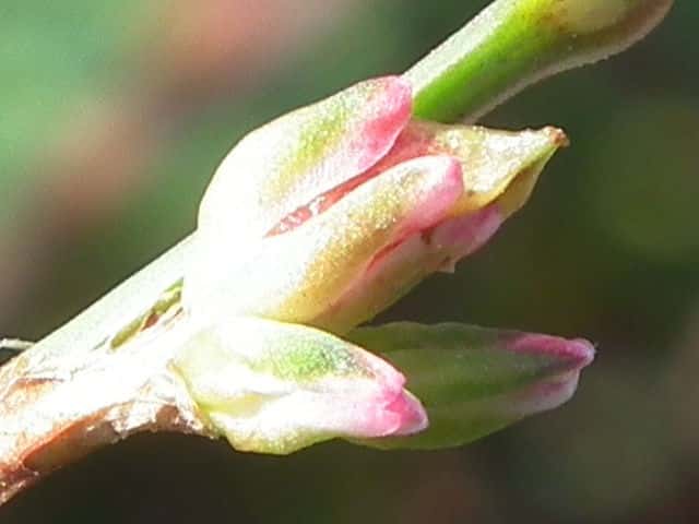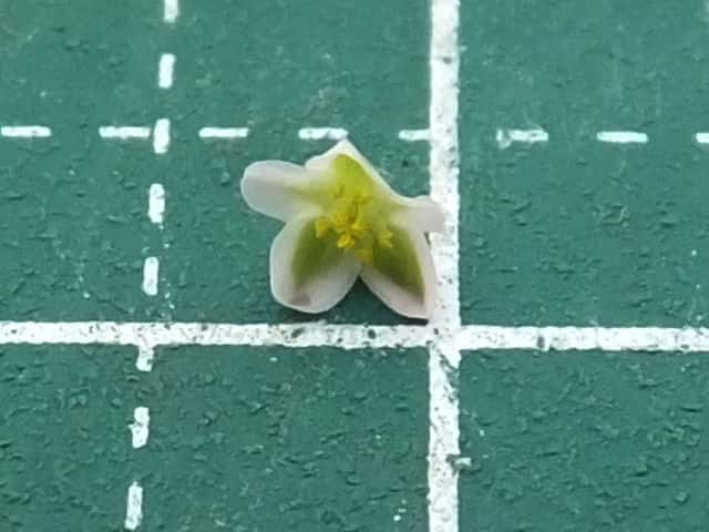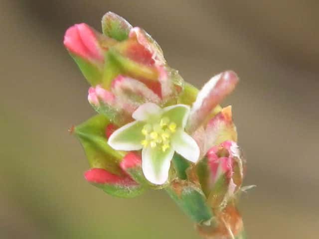 | ▼花は直径約4mm、花被は長さ約3mm。 | ▼若い果実 | ▼果実は萼から先端を出している。 |