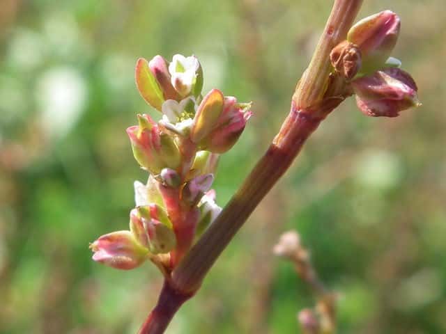 | ▼果実は長さ約5mm、3稜がある。 | ▼葉がほとんど落ち、穂状花序に見える。 | |