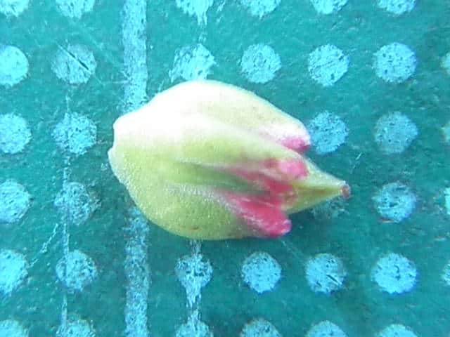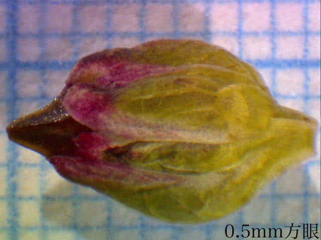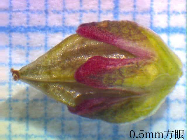| ▼萼に包まれた若い果実、長さ約5mm。 | ▼若い果実、長さ約4mm。 | |