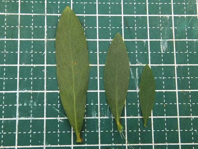 | ▼葉が落ちていない株。 | ▼葉は長さ約2.3〜5cm。 | |