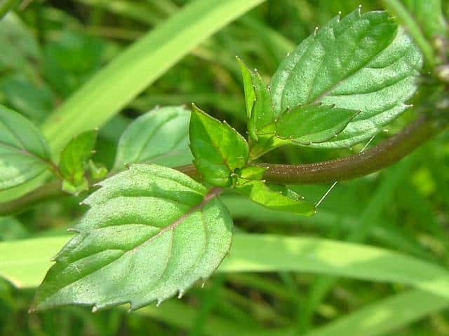 オランダハッカとヨウシュハッカの雑種で、花序につく葉が小さく、萼筒が無毛で腺点だけが目立つ。花期は8〜10月