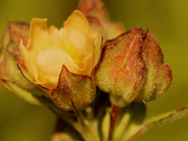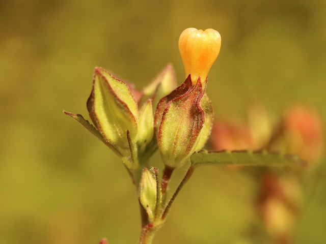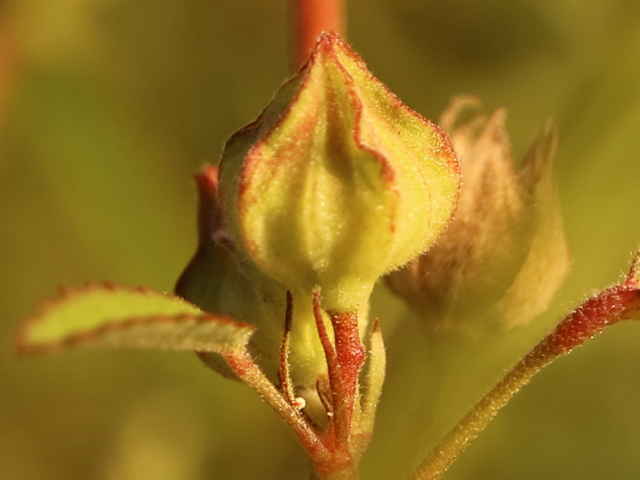 | ▼葉柄基部に線形の托葉がある。 | ▼若い果実は萼が閉じている。 | |