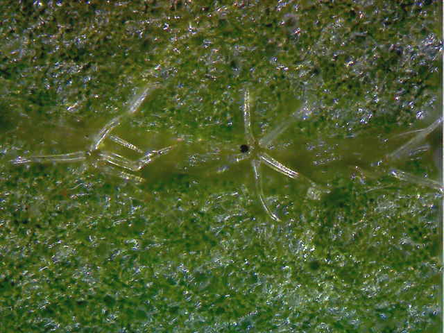 | ▼脈上に小さな星状毛が散在する。 | ▼葉の裏面。 | ▼裏面には一面に星状毛がある。 |
