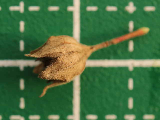 | ▼花柄は長さ約1cm。 | ▼熟すと萼が開く。 | ▼果実は5分果がある。 |