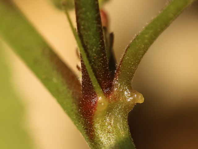 | ▼葉柄基部に線形の長い托葉がある。 | ▼托葉の基部にも突起がある。 | |