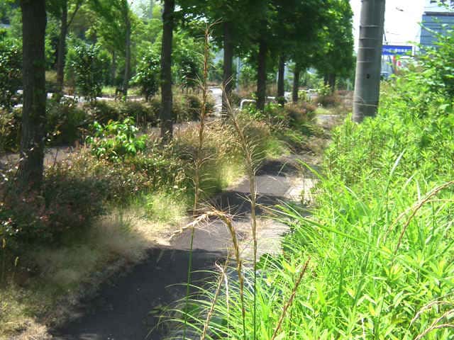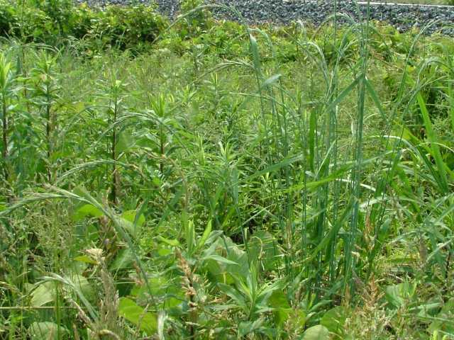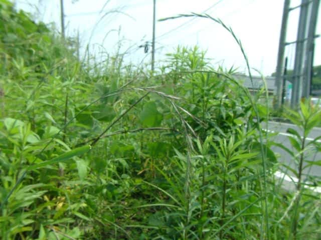 | 多年草 北海道〜沖縄の路傍や耕地付近に生育する。茎は直立、やや叢生する。高さ30〜90cm。葉は長さ15〜25cm、幅4〜8mm。表面がざらつく。花序は穂状、長さ10〜20cm、粉緑色を帯び点頭する。小穂は長さ10〜15mmで4〜7個の小花よりなり、ほとんど無梗。2苞穎は長さ6〜7.5mm、5〜7脈。護穎は長さ7.5〜9mm、5脈、長い剛毛が散生し、15〜20mmの芒をそなえる。内穎は長さ6〜6.5mm。内穎は護穎より短い。果実は褐色、無光沢、長さ4〜5mm、幅1.3〜1.5mm。花期は6〜7月。(日本イネ科植物図譜) 学名は、Elymus racemifer イネ科エゾムギ属 花穂が立ち、護穎に毛の少ないものはタチカモジとして区別される。 よく似たカモジグサは小穂が紫色を帯び、護穎と内穎が同長。 |