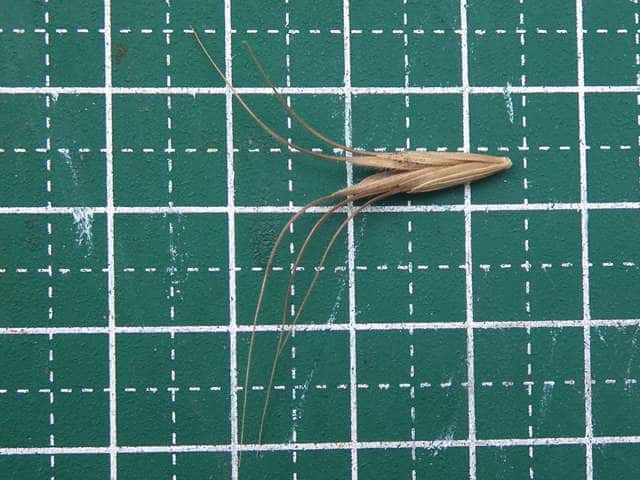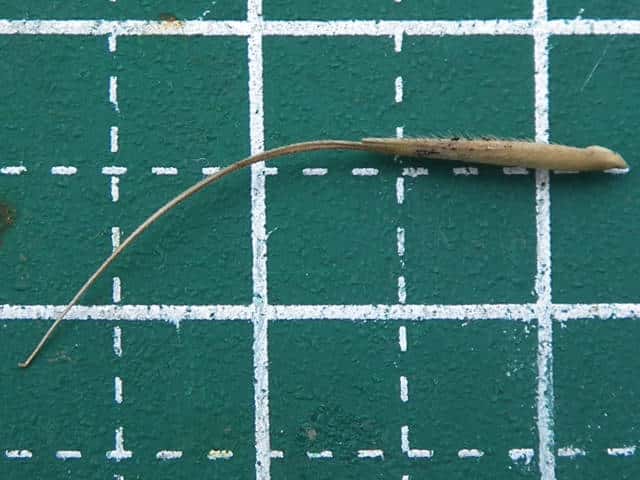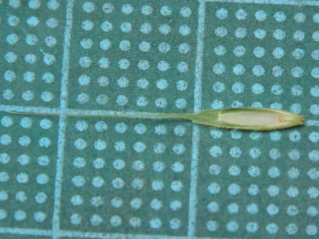 | ▼第1苞穎と第2苞穎はほぼ同長、約8mm。 | ▼護穎は長さ約9mm、芒は約2cm。 | |