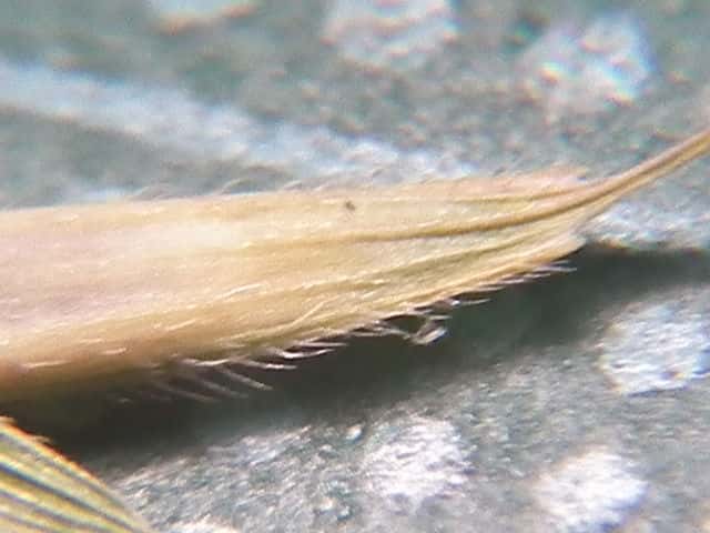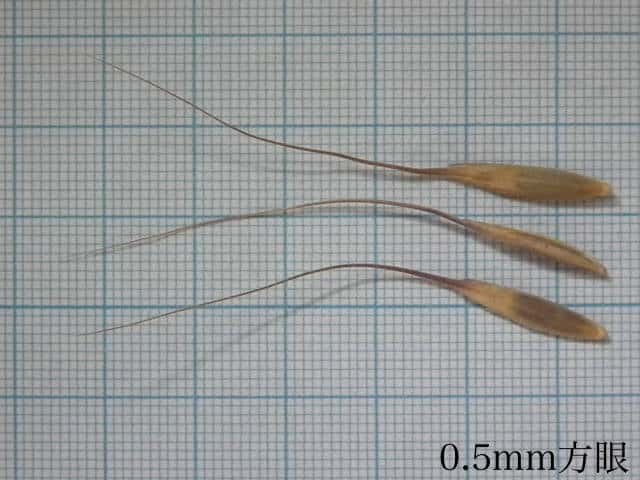 | ▼護穎の縁に長毛があり、背にも毛がある。 | ▼護穎の背に毛がある。 | ▼内穎は護穎より短く、先が円い。 |