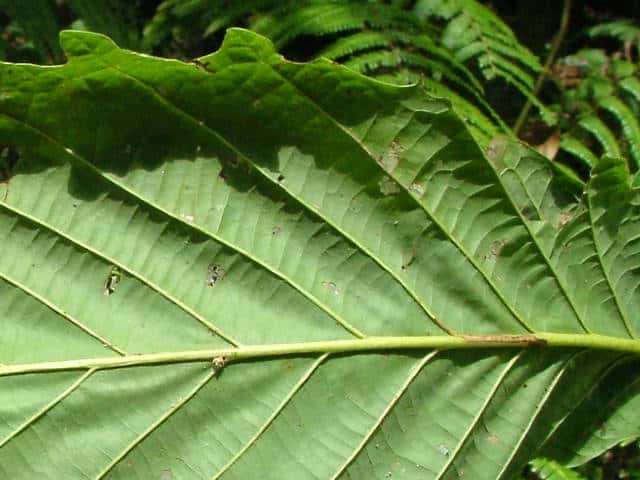 ▼葉柄は長さ約1.5cm。