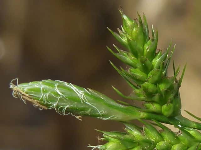 | ▼雄鱗片の芒が目立たない。 | ▼雌小穂は長さ1〜1.5cm。 | |