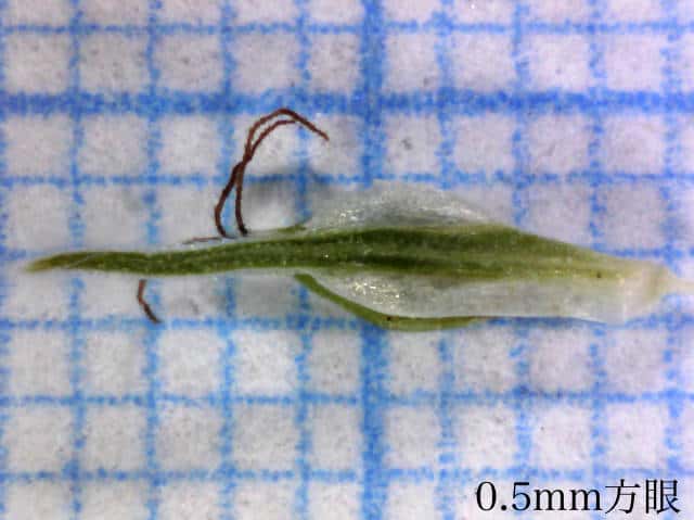 | ▼雄小穂は長さ約9mm。 | ▼雄鱗片は長さ約3.5mm。 | |