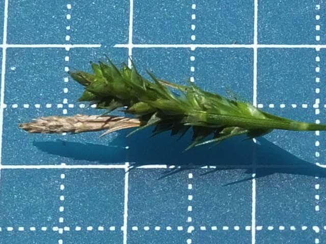 | ▼雄鱗片に芒があるとされるが。 | ▼雌鱗片は長い芒がある。 | ▼雌小穂は長さ約2cm。 |