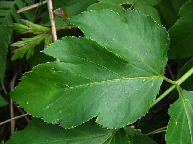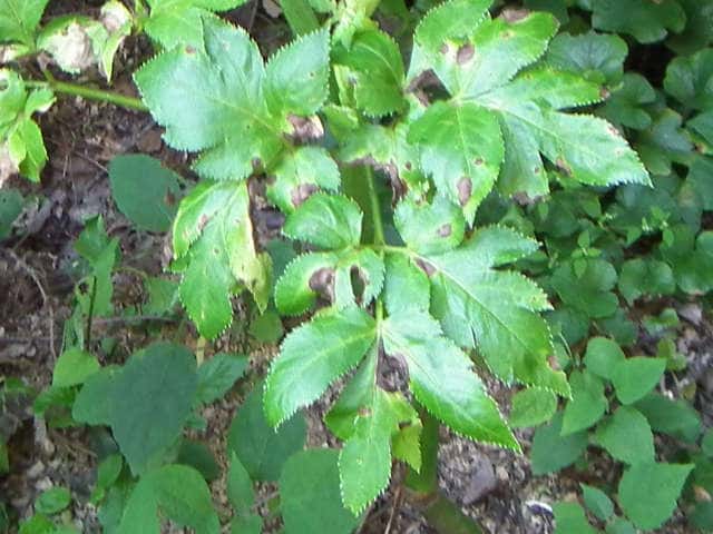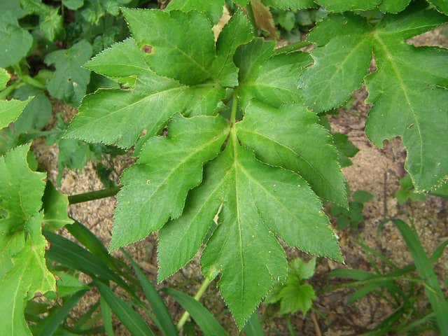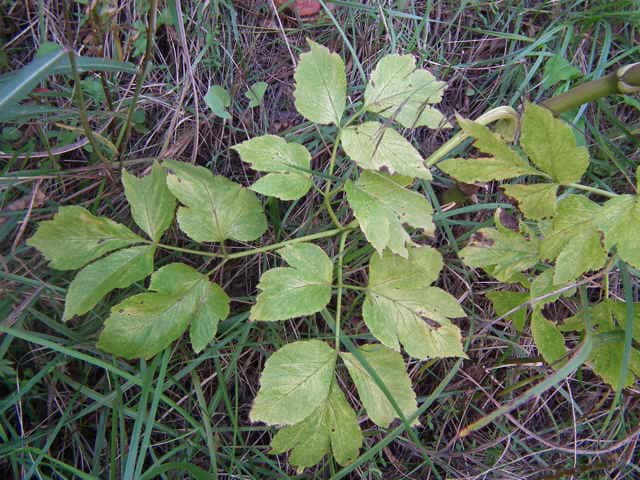 | 葉柄を切ると黄色い液が出る。 | ||