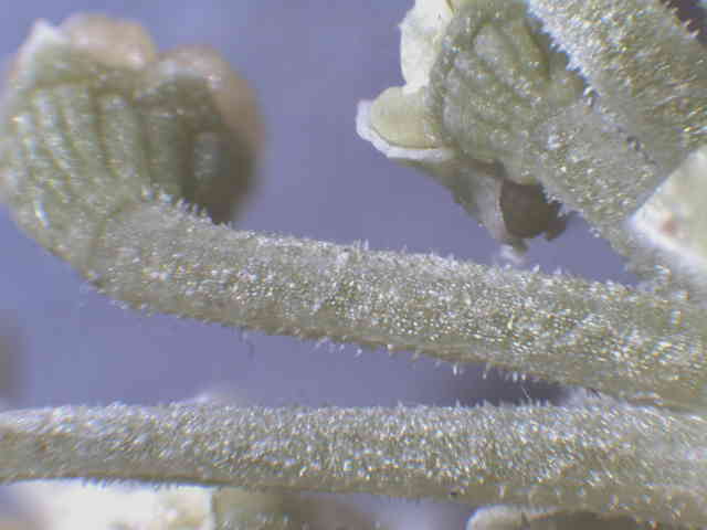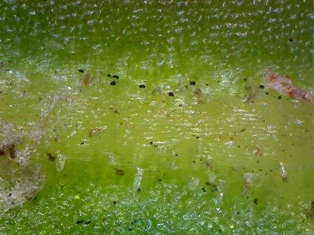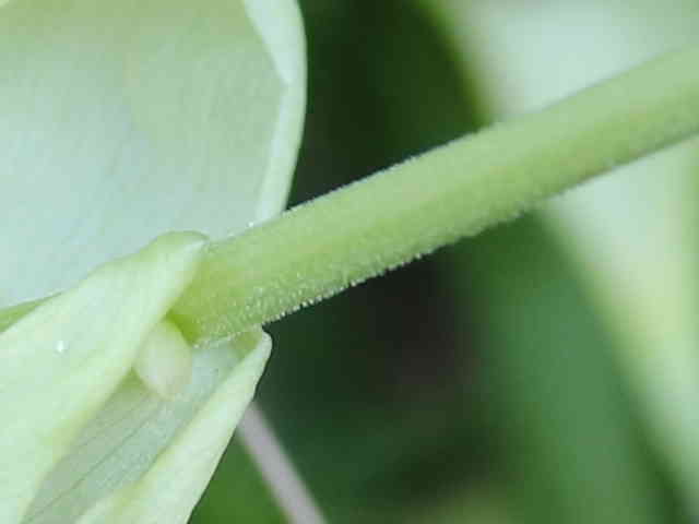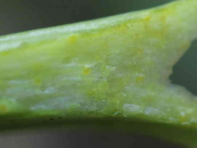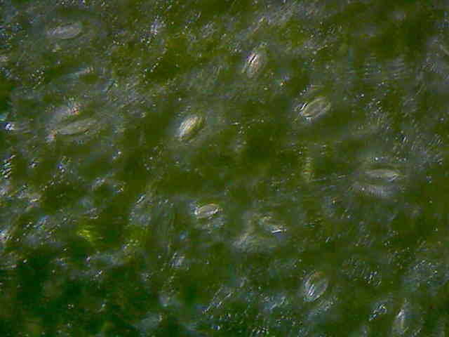| ▼気孔が多数ある。 | ▼葉軸は無毛。 | |