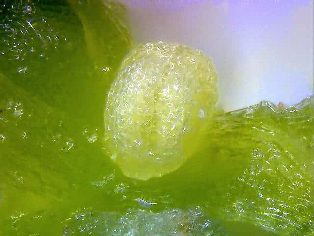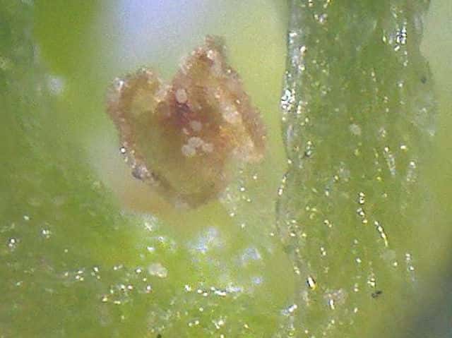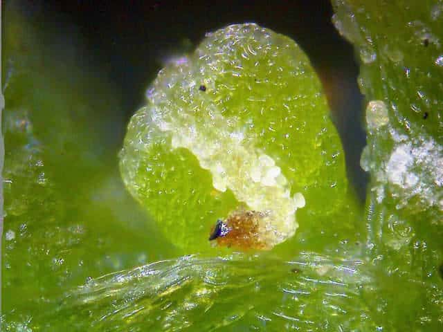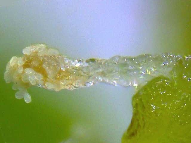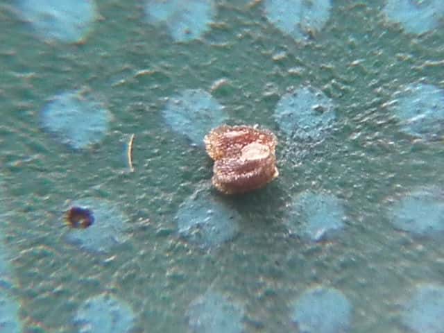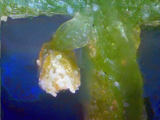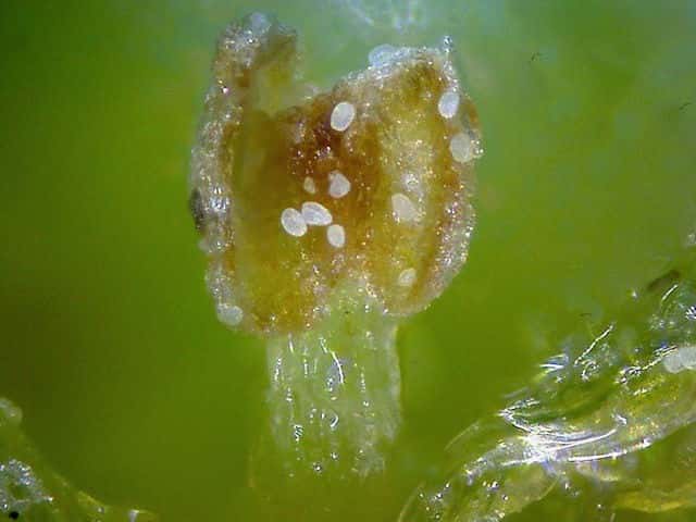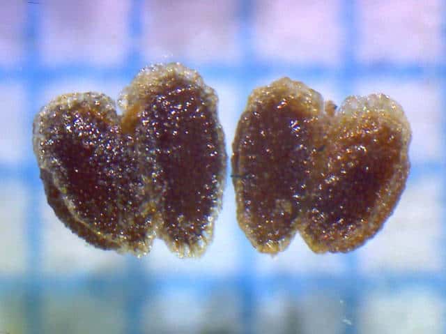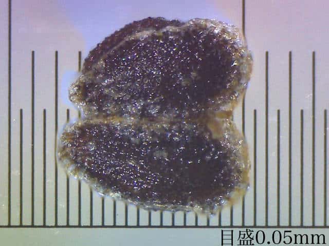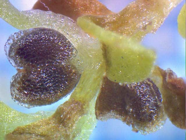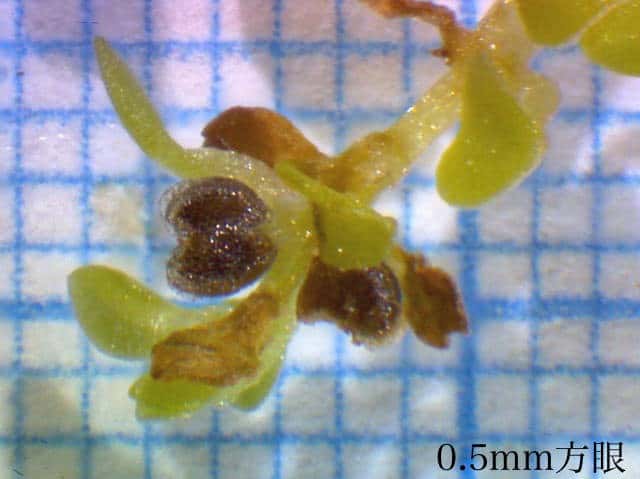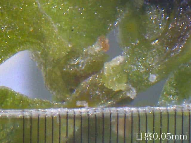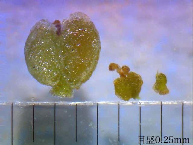 | ▼果実は長さ約0.8mm。 | ▼果実は中央で合わさっている。 | ▼果実は2枚が合わさっている。 |