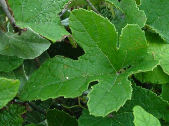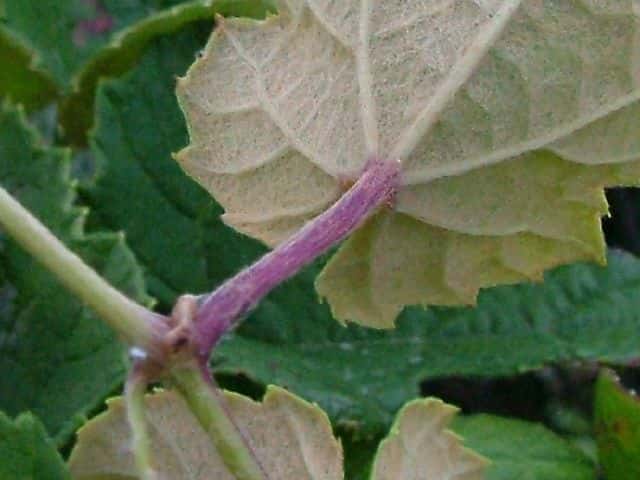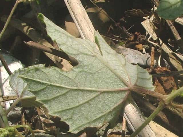 | ▼脈上に毛がある。 | ▼裏面にはクモ毛がある。 | |