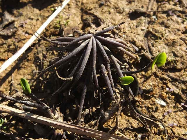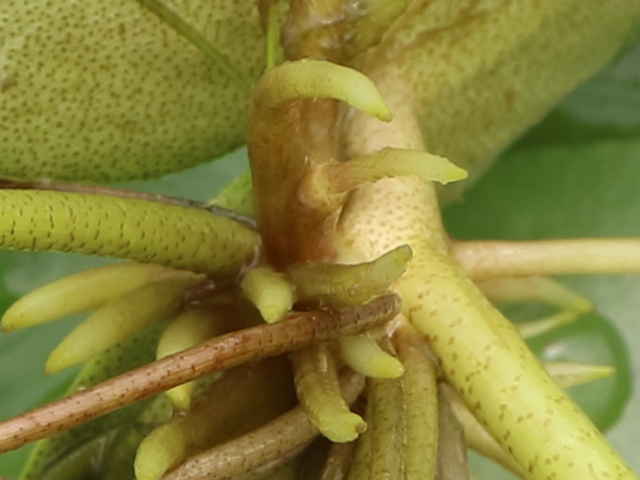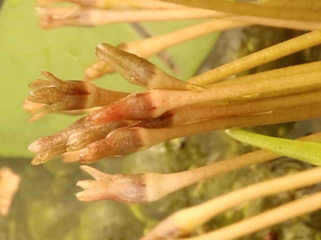 | ▼太く短い根が房状になった殖芽。 | ||