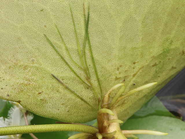 | ▼短い葉柄がある。 | ▼細い根が太短くなって殖芽を形成する。 | |