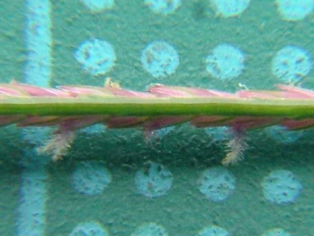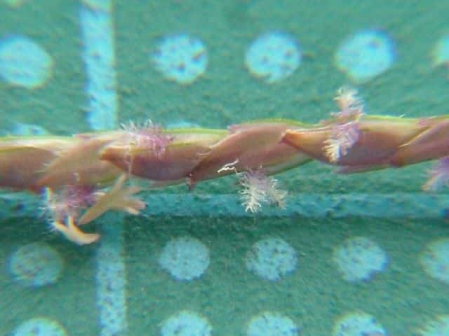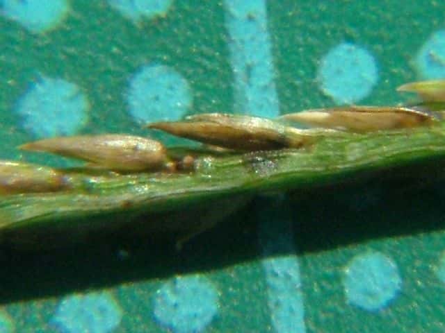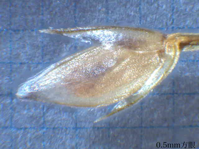 | ▼苞穎は不同長、護穎に毛がある。 | ▼小穂は長さ約2.6mm。 | |