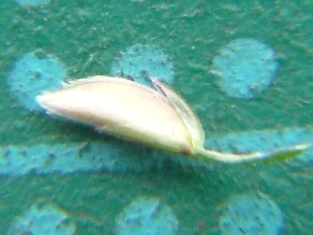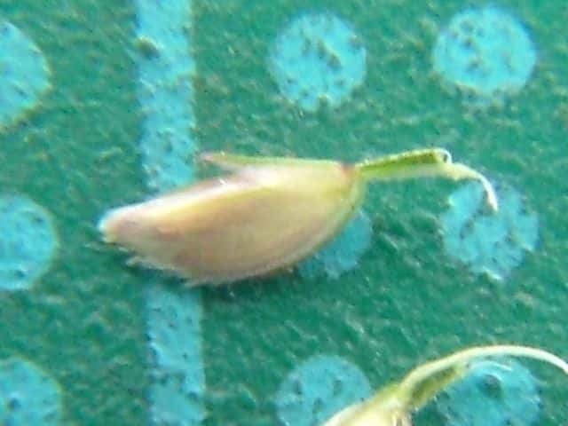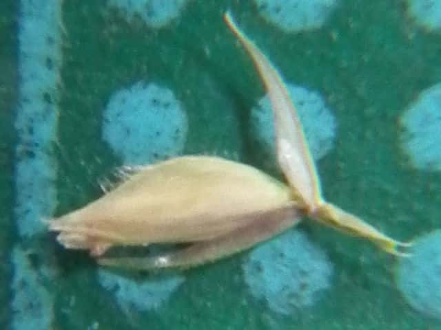 | ▼第1苞穎は長さ約1.8mm、第2苞穎は2mm。 | ▼護穎の竜骨に毛がある。 | |