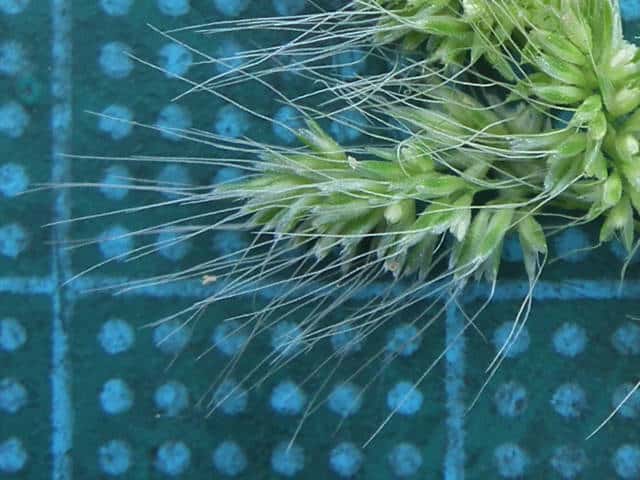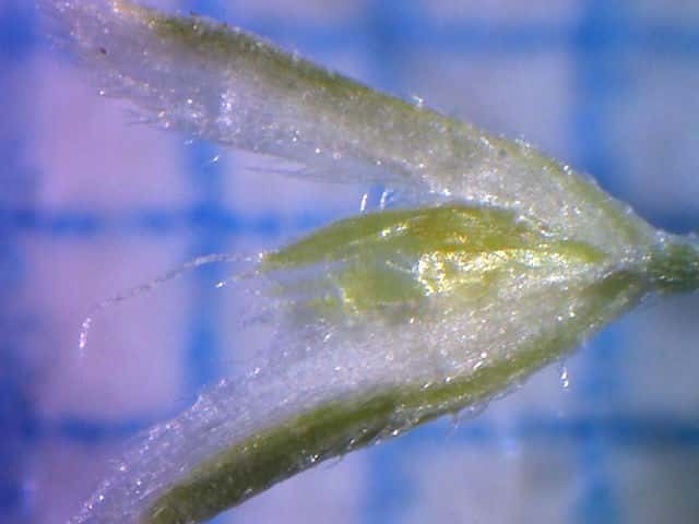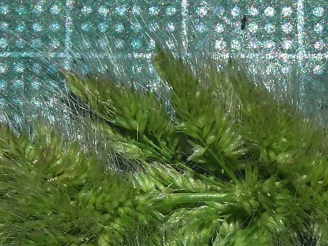 | ▼2個の包穎に芒があり、長さ約4.5mm。 | ▼包穎は長さ約1.7mm、毛がある。 | ▼包穎の中に1小花がある。 |