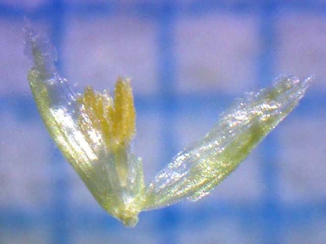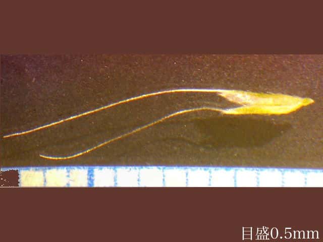 | ▼小花は長さ約1mm、護穎に芒がある。 | ▼護穎の中に花がある。 | |
