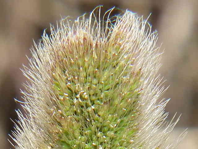 | 越年草 本州〜沖縄の海浜の湿地に生育する。茎は高さ30〜60cm、直立。葉は長さ8〜15cm、幅5〜8mm、表裏とも少しざらつき無毛。葉舌は鋭形、長さ6mm。葉鞘は平滑・無毛。花序は穂状、長さ5〜7cm、径7〜10mm、淡緑色の小穂が密に集まる。小穂は長楕円形、1小花からなり、2個の包穎はともに披針形、長さ2mmくらいで毛があり、先端近くから長さ6〜10mmの芒を出す。護穎は卵形、薄く光沢があり、短い芒をつける。果実は長楕円形、腹面は溝状にくぼみ、乳褐色、長さ1〜1.5mm。花期は5〜6月。(日本イネ科植物図譜) 学名は、Polypogon monspeliensis イネ科ヒエガエリ属 |