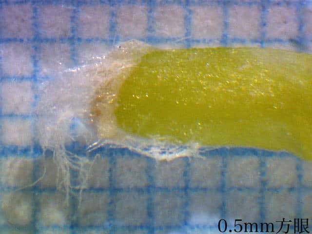 | ▼果実の頭部の毛。 | ▼葉鞘は無毛。 | |