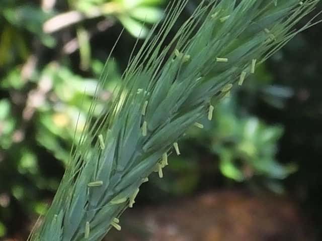 | ▼小穂は2個ずつついている。 | ▼2個ずつついた小穂。 | ▼護穎に長さ約2.5cmの芒がある。 |