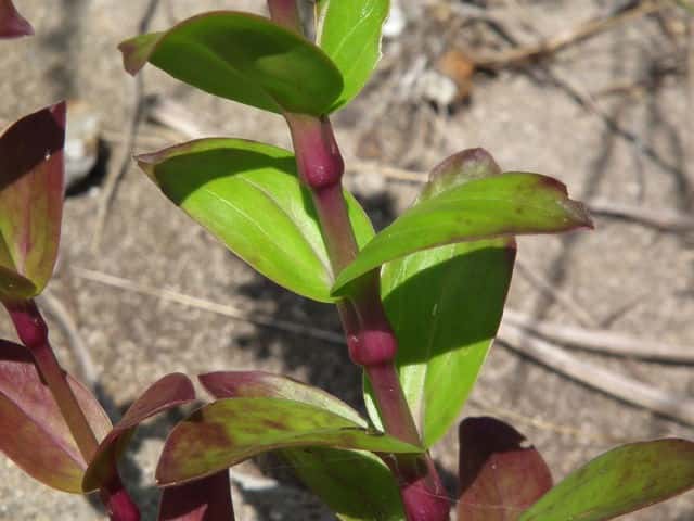 | ▼花柱が2個、雄しべ10個。 | ▼葉は光沢があり、対生する。 | |