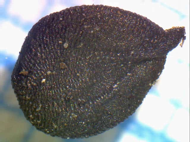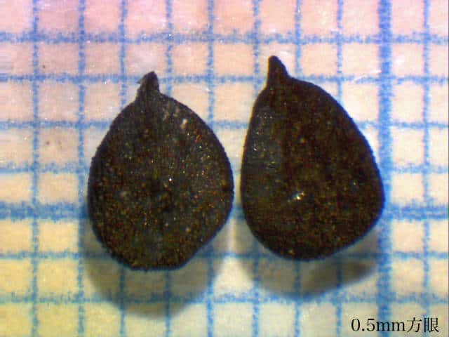| ▼種子の背面、扁平で長さ約2mm。 | ||