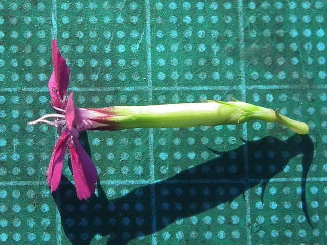 | ▼萼筒は長さ約2cm。 | ▼花は直径約1.9cm。 | |
