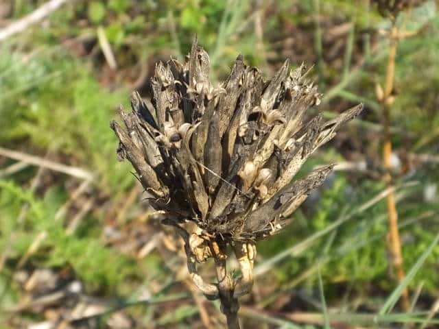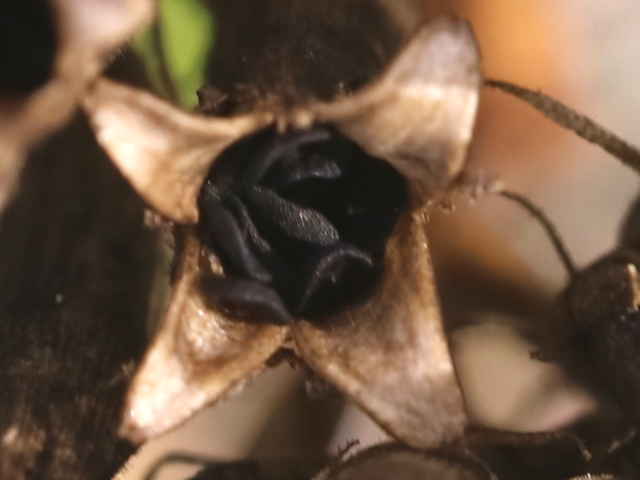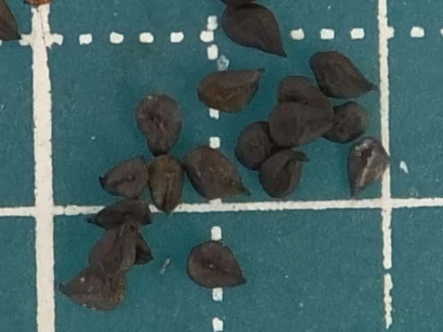 | ▼去年の果実。 | ▼種子は長さ約2mm、扁平で黒色。 | |