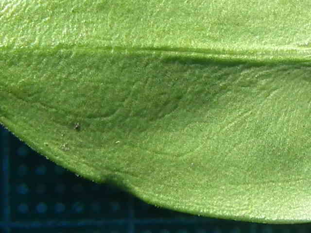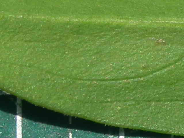 | ▼葉の裏面。 | ▼葉の裏面は無毛。 | |